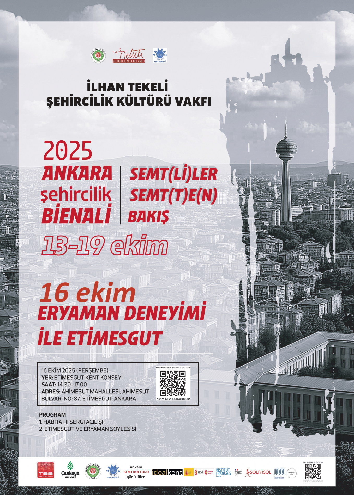 İTŞKV Ankara Şehircilik Bienali, 16 Ekim 2025 tarihinde, saat 14.30 - 17.00 aralığında Eryaman Kent Konseyi'nde gerçekleştirilecektir.