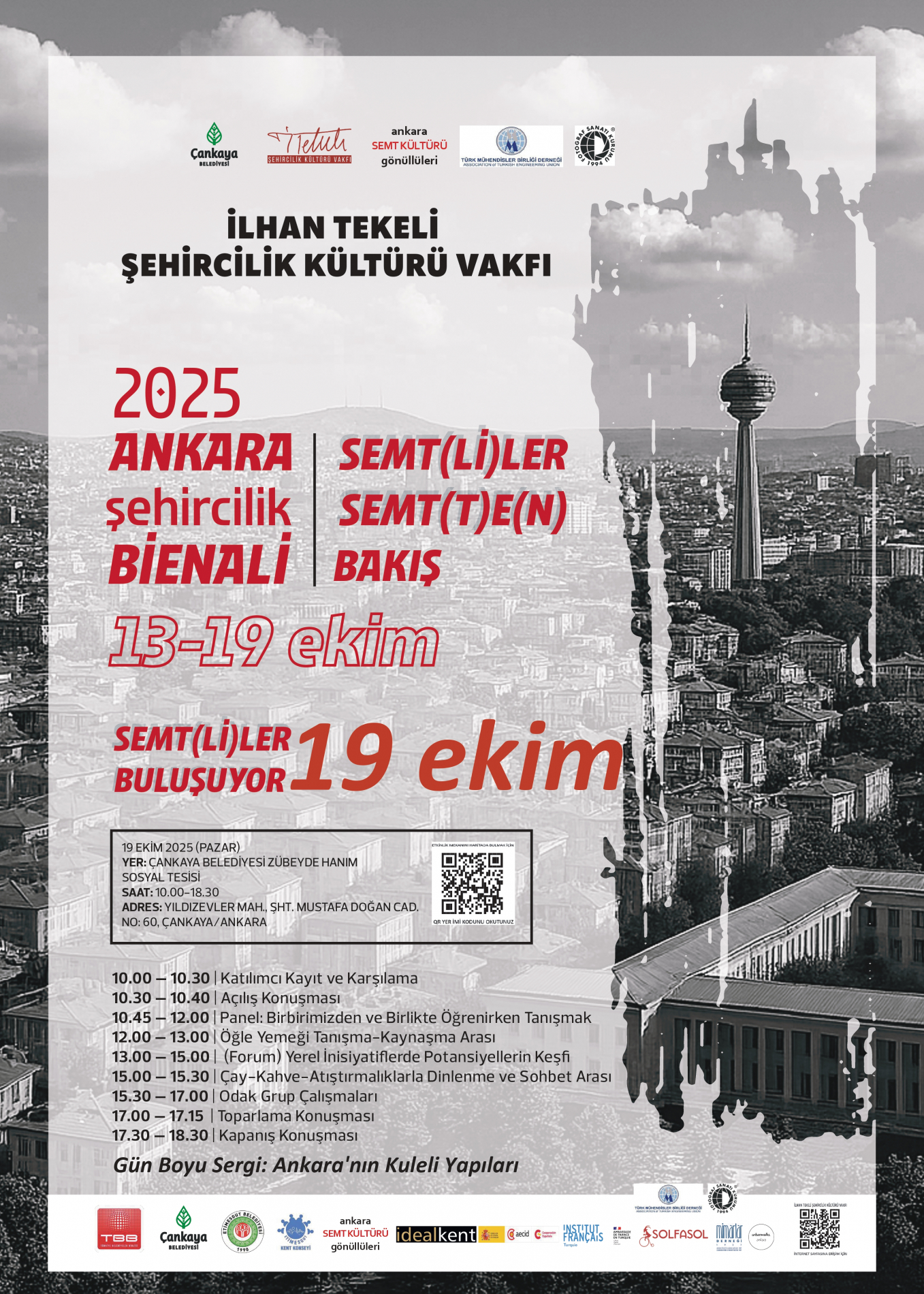 İTŞKV Ankara Şehircilik Bienali, 19 Ekim 2025 tarihinde, saat 10.00 - 18.30 aralığında Çankaya Belediyesi Zübeyde Hanım Sosyal Tesisinde gerçekleştirilecektir.