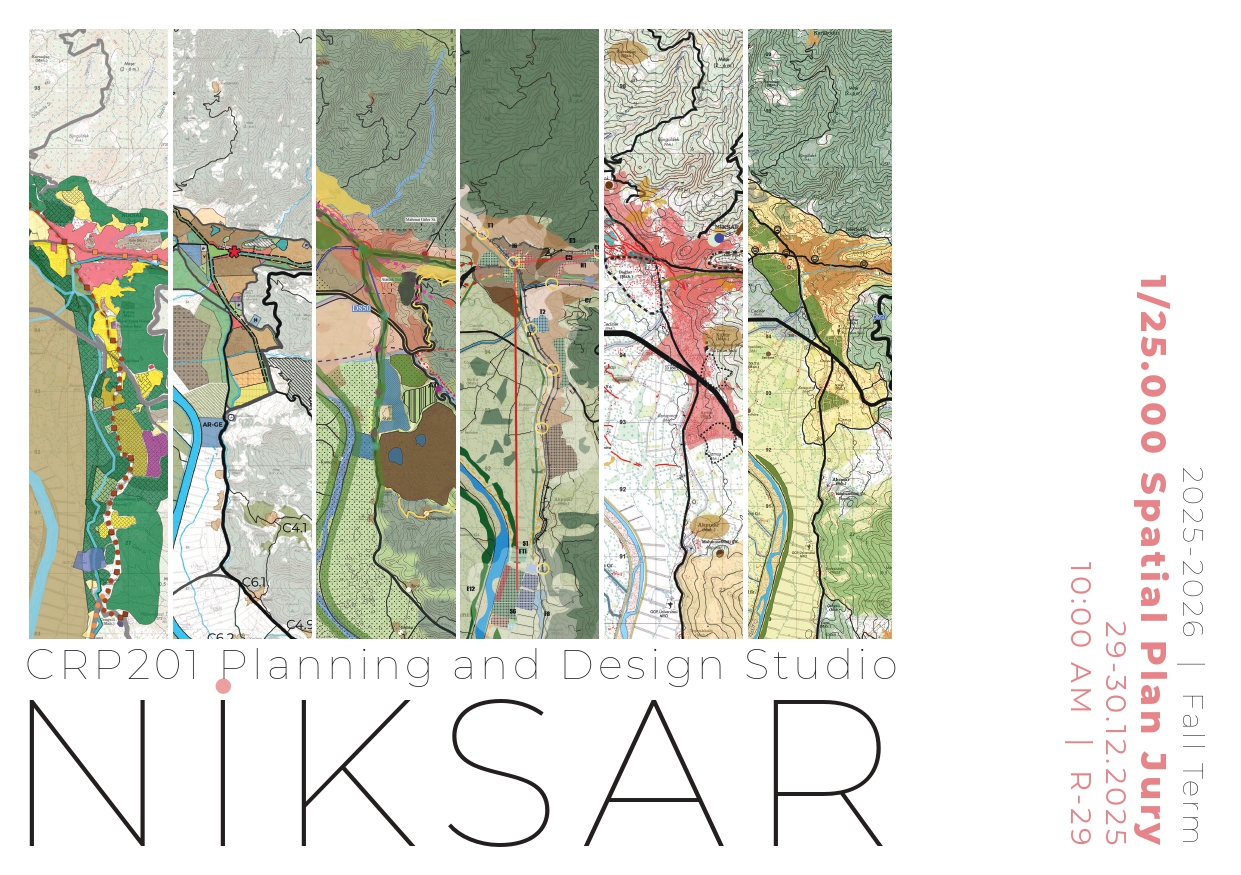 The 2025-2026 Academic Year Fall Term Jury for the 1/25.000 Scale Spatial Plans of CRP201 Niksar Planning and Design Studio will take place on 29-30 December, 2025. Student projects consisting of plans and reports, will be presented within the framework of the Visions for Niksar, which are unique to each group.